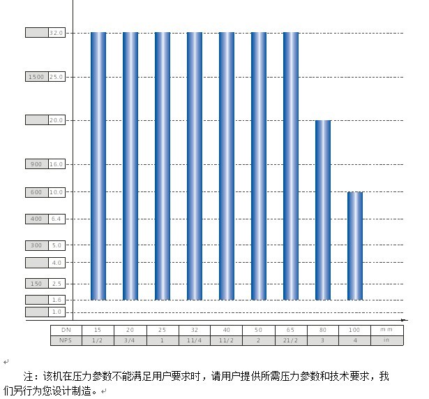 3.3 JWZQ-300型 (潛水式)閥門公稱通徑與公稱壓力試驗范圍