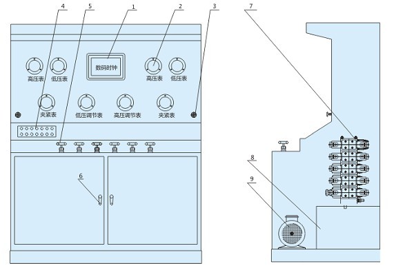 1. 數(shù)碼時鐘 2. 壓力表 3. 壓力表開關(guān)