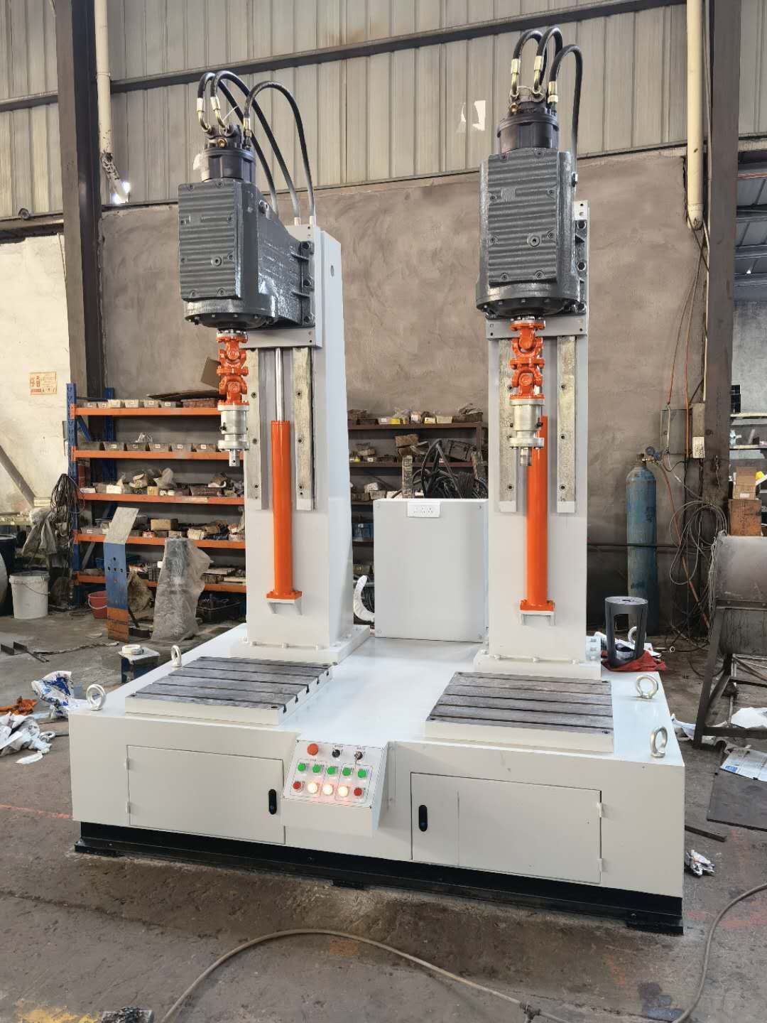 JLX型旋塞閥研磨機(jī)分為一工位和兩工位研磨機(jī)、一工位研磨機(jī)和兩工位研磨機(jī)供用戶可根據(jù)要求選配。該設(shè)備通過(guò)液壓馬達(dá)來(lái)控制轉(zhuǎn)速旋轉(zhuǎn),用液壓流量來(lái)控制轉(zhuǎn)速快與慢,根據(jù)閥門口徑大小和材質(zhì)來(lái)調(diào)整轉(zhuǎn)速快慢,這樣才閥體和閥芯塞配合度為一致。用戶根據(jù)被研磨閥體的工藝要求,選擇合適的研磨劑,粗磨和精磨相結(jié)合,或閥體與閥芯塞浮動(dòng)對(duì)磨。研磨頭通過(guò)液壓油缸來(lái)上升下降來(lái)實(shí)現(xiàn)。